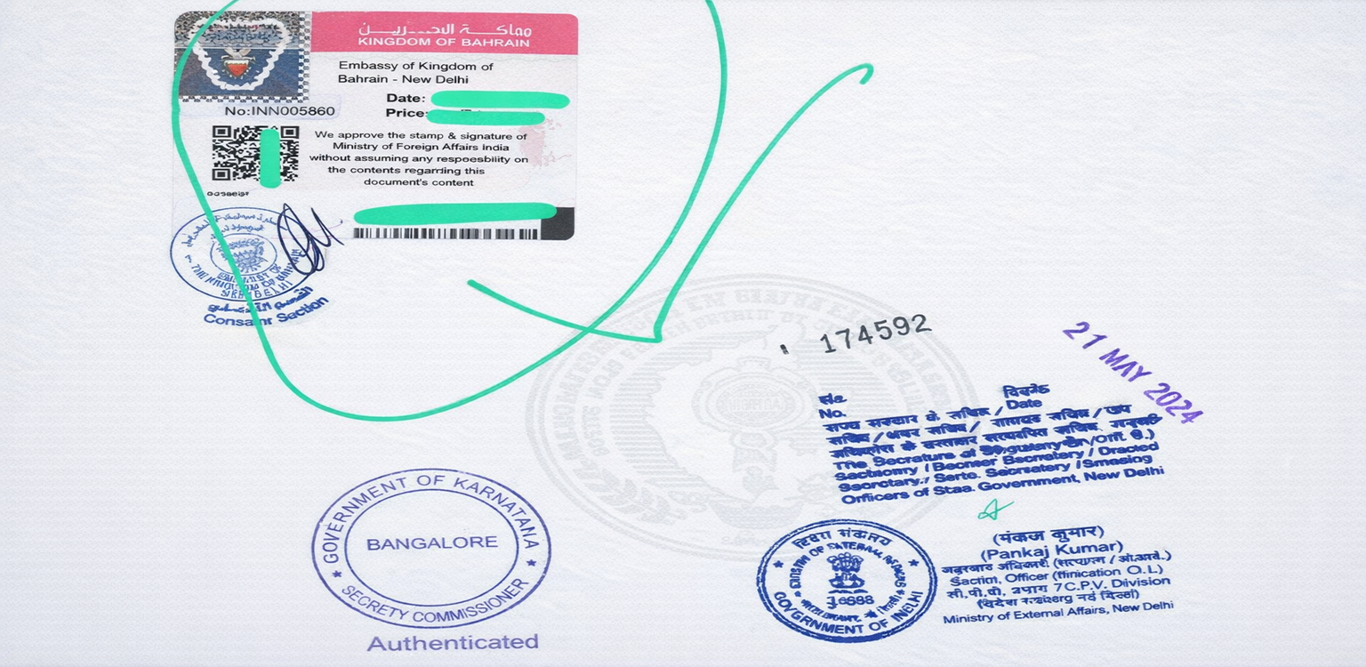 Bahrain Embassy Attestation verifies the authenticity of educational, personal, and commercial documents through a structured process involving State authorities, the Ministry of External Affairs (MEA), and final legalization by the Embassy of Bahrain in India.